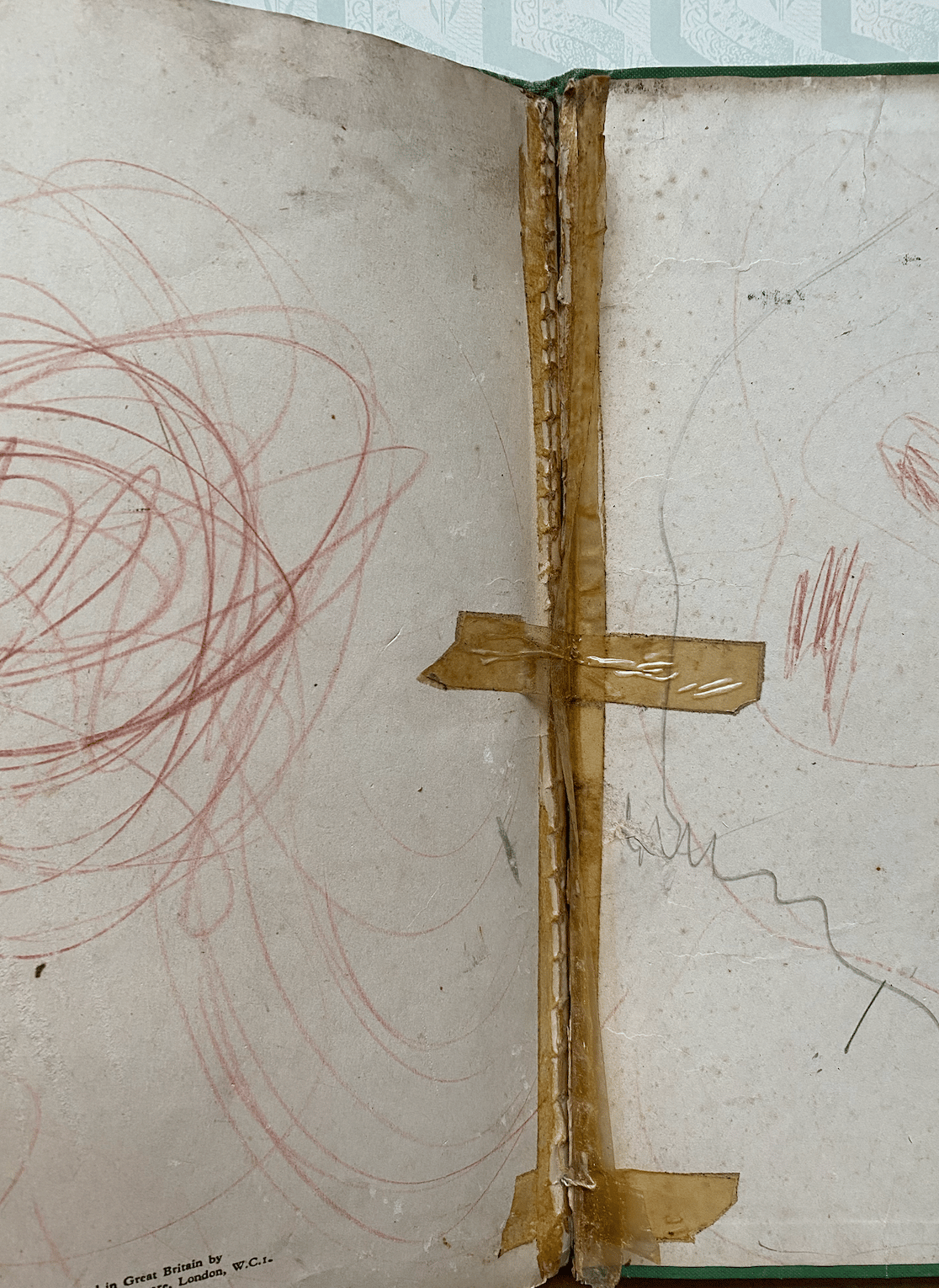 Condition: Poor with many signs of age and edge bumps, there are some marks on the cover and the board cover is coming away from the pages. There is sellotape on the front and back boards and various scribbles on the end papers and a couple of the images but most of the images are bright and clean.