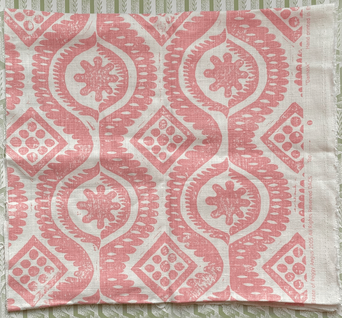 A remnant piece of Blithwood linen fabric with a design from the estate of Peggy Angus, made under copyright..